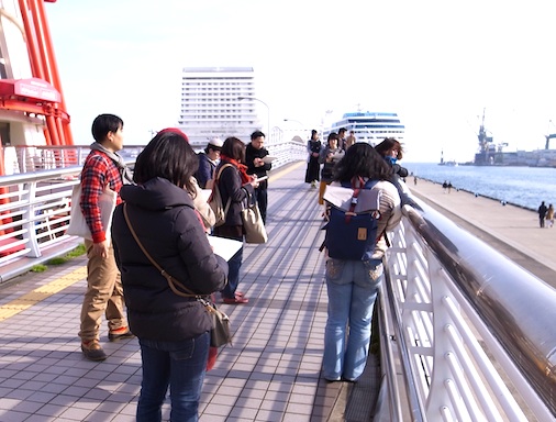 きょうは、海の近くまで歩いて、外で、クロッキーの授業でした。